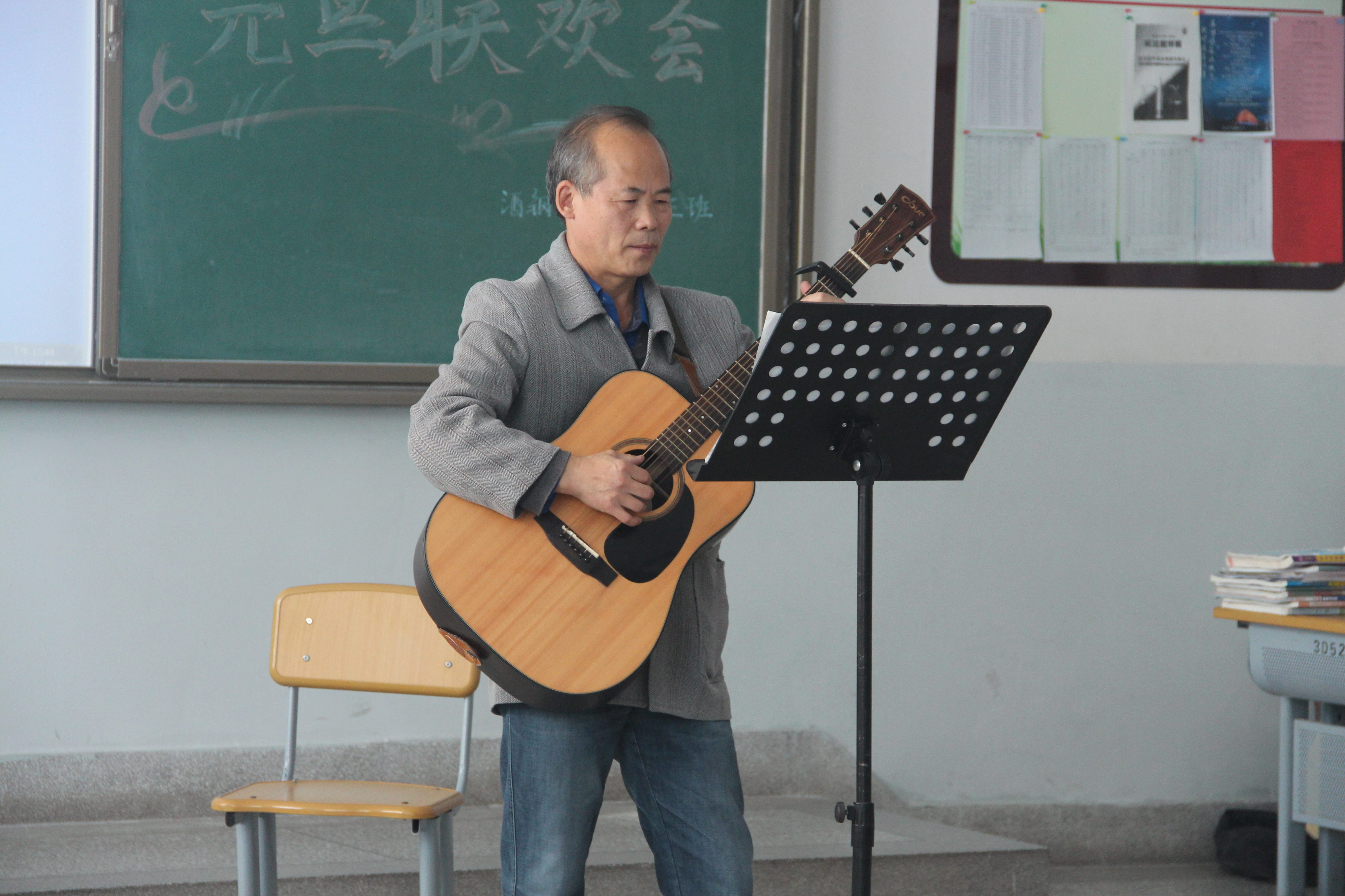 在高一元旦联欢会上,我们有幸听到了赵老师的吉他弹唱。我们所有人都没想到赵老师作为一位物理老师还有这一手。后来又听说他还会吹长笛、画画,书法也好。古人云“君子六艺”有礼、乐、射、御、书、数,在现代社会,射与御已不太现实,除此之外,赵老师的确算得上不折不扣的君子了。